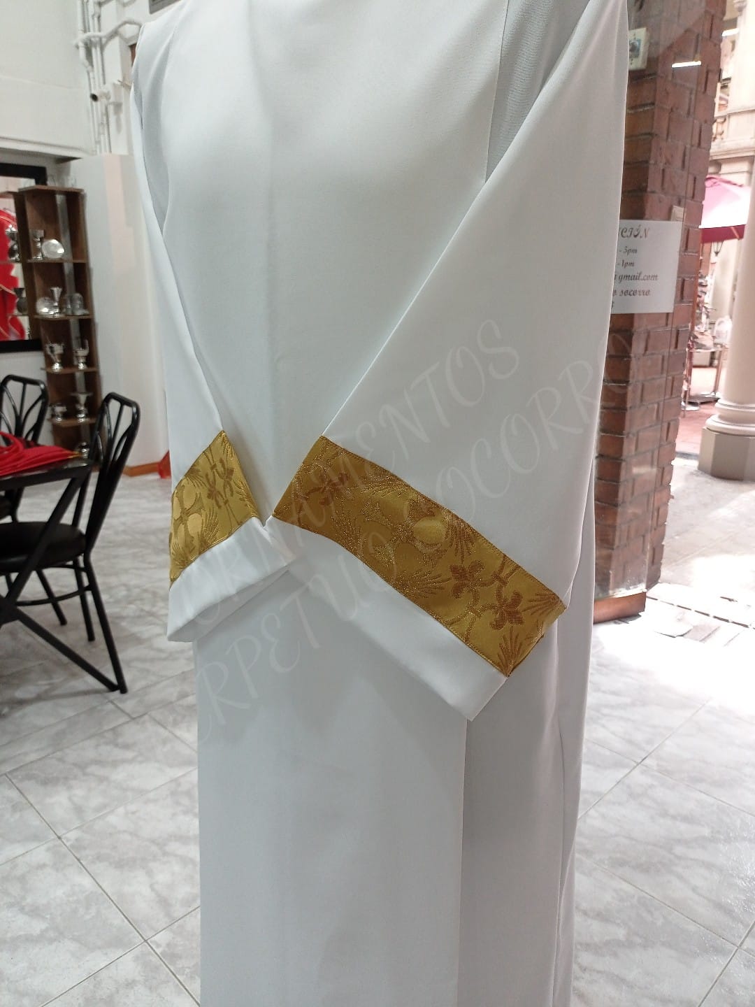 Elaborada en tela lino fino nacional, con galones importados, posibilidad en cambios de brocados o galones por insumo agotado, se le informa al cliente la disponibilidad en el producto disponible
